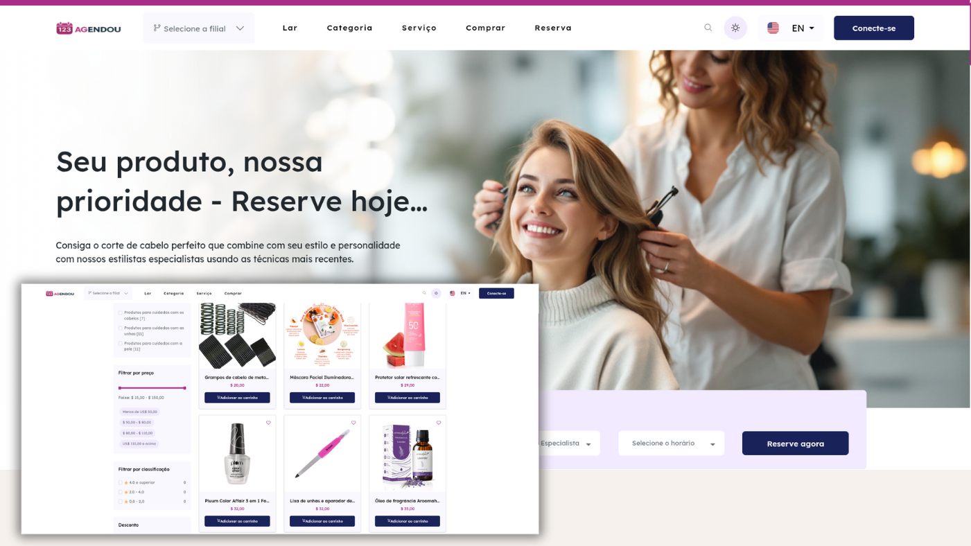 Tenha sua página exclusiva para vender produtos e agendar serviços. Uma solução completa para profissionais e negócios da beleza gerenciarem seu e-commerce e sua presença online de forma simples e eficiente, tudo em um só lugar